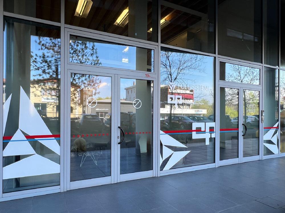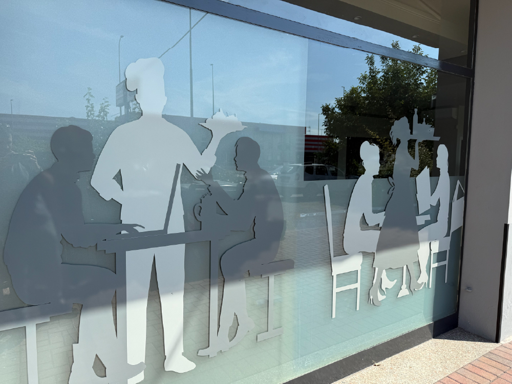 Decorazione Vetrine Brescia - Adesivi intagliati, fondo sabbiato
