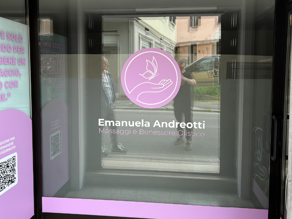 Decorazione Vetrine Emanuela Andreotti - Adesivi intagliati, fondo sabbiato